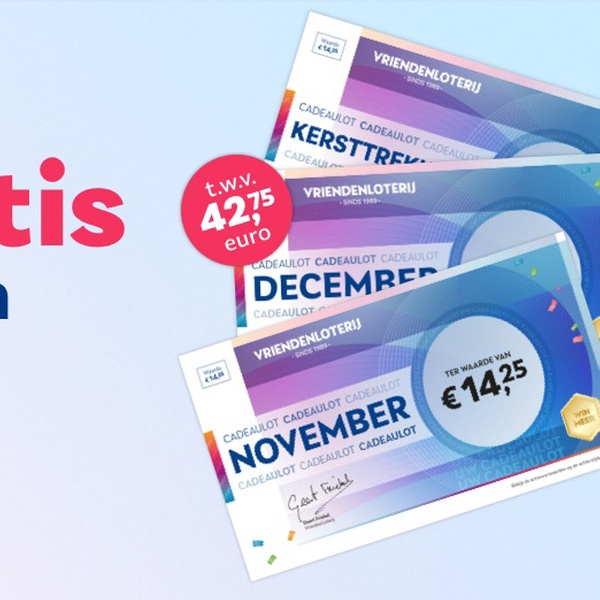 Meer info: je speelt t/m december gratis mee. Na afloop van de actie blijf je automatisch betaald meespelen voor € 14,50 per lot per trekking. Er zijn 15 trekkingen per jaar en je kan meespelen hoe lang je zelf wil. Je kan het lidmaatschap op elk moment opzeggen. Onze Verkoopvoorwaarden en de Wettelijke Bedenktermijn gelden voor alle deals.