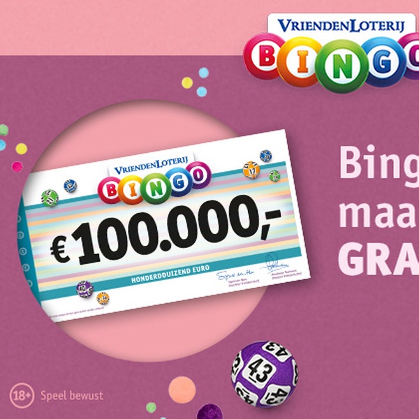 Sluit je aan bij de VriendenLoterij en maak elke week kans op fantastische Bingoprijzen - elke week zijn er gemiddeld 80.000 winnaars. Heb je als eerste een volle Bingokaart? Dan win je € 100.000. De VriendenLoterij steunt goede doelen, clubs en verenigingen in Nederland die zich richten op gezondheid en welzijn van mensenSinds 1998 heeft de VriendenLoterij ruim € 969 miljoen geschonken aan meer dan 3.300 (sport)clubs en verenigingen en 46 goede doelen, waaronder Richard Krajicek Foundation, Dirk Kuyt Foundation en Spieren voor Spieren. Als deelnemer heb je de mogelijkheid om voor een zelfgekozen maatschappelijke organisatie mee te spelen.