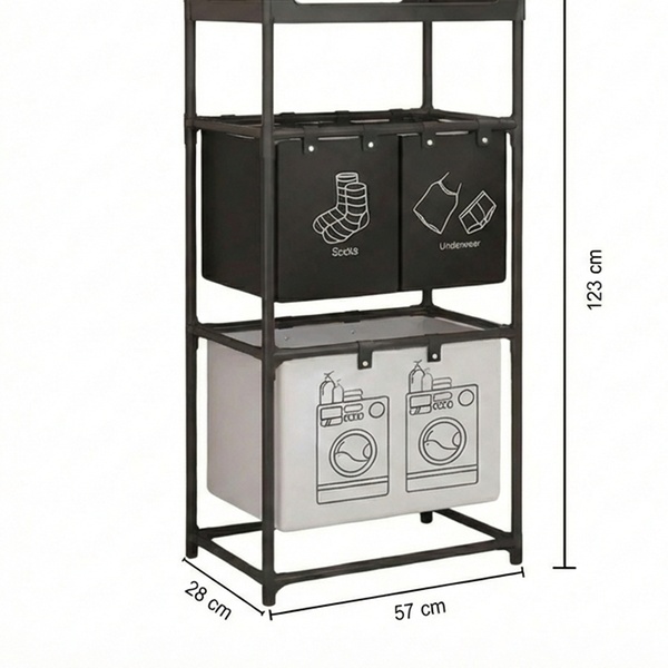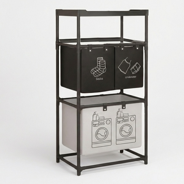 Deze wasmand organizer beschikt over een ruimtelijk ontwerp met drie gescheiden vakken voor het direct sorteren van wasgoed in de kast of badkamer