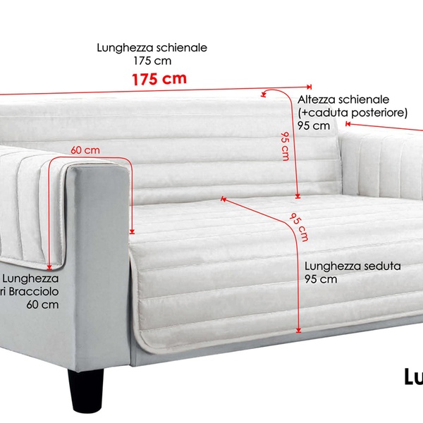 - 3 plaatsen - 175 cm zitting + hoes armleuning zijkant