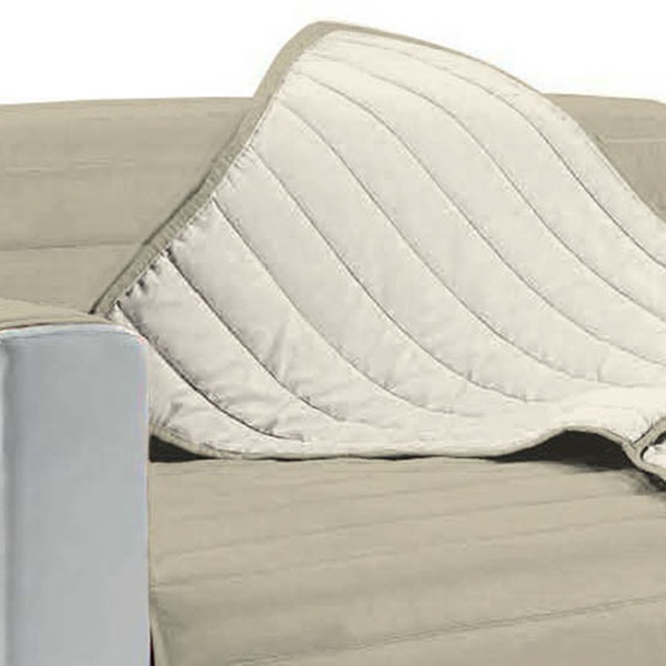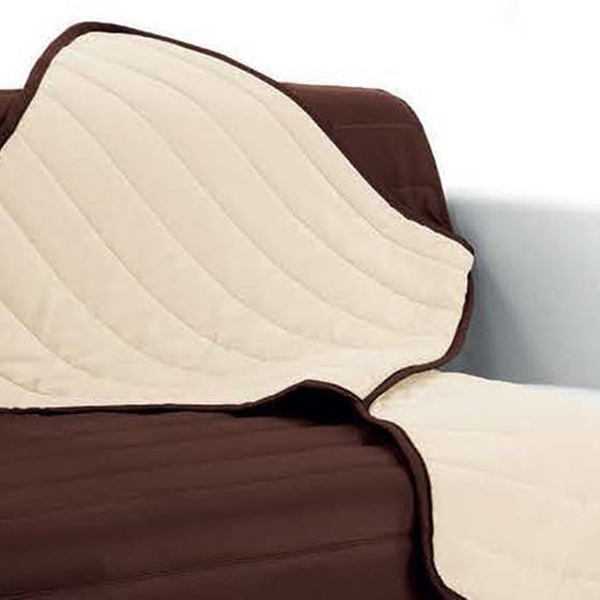 Deze waterdichte gewatteerde bankhoes van microvezel is onderworpen aan de ‘peach skin’-behandeling voor een soft touch.