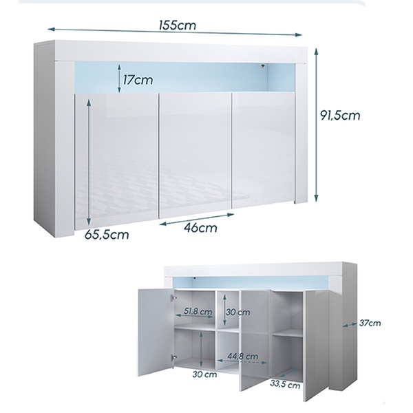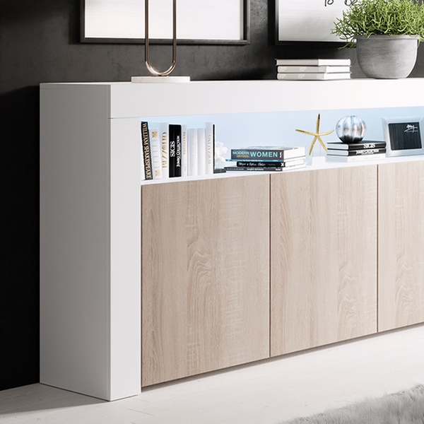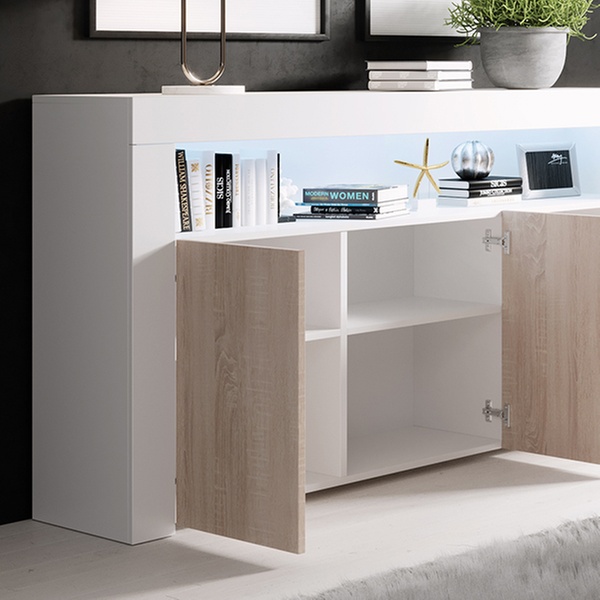 Verlicht je interieur met dit dressoir, compleet met stijlvolle led-verlichting en een eigentijdse, glanzende afwerking