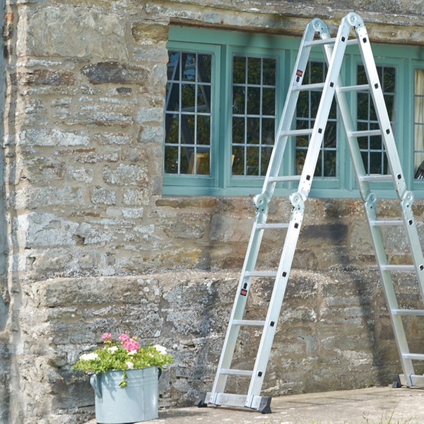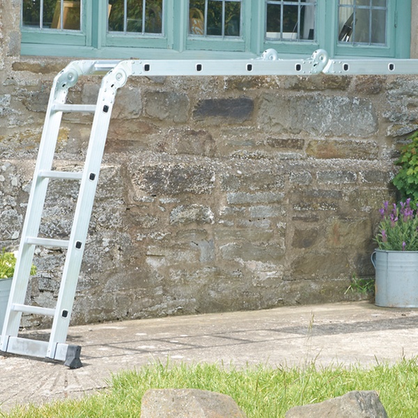 - Gebruik als een rechte of overhangende ladder, ladder of steiger