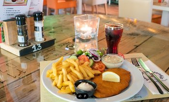 Knapperige kipschnitzels in een knus pannenkoekenhuis voor jong en...