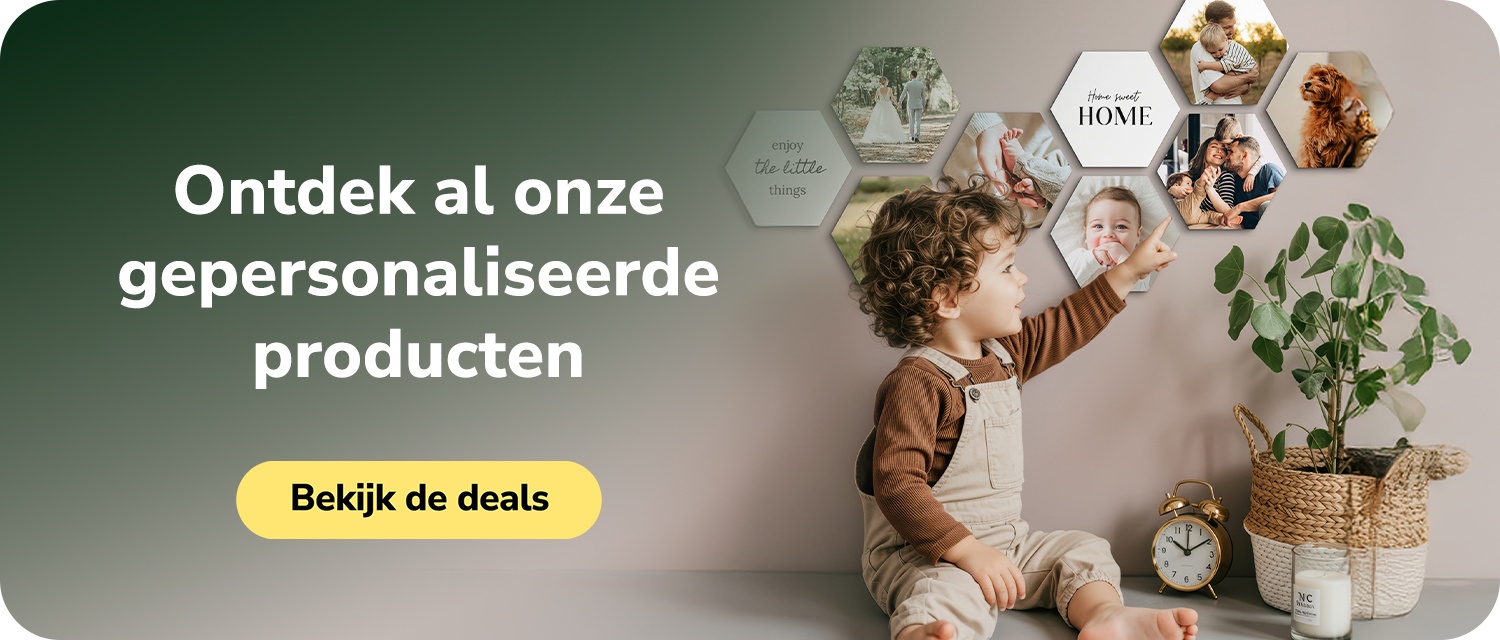 Gepersonaliseerde producten geven jouw mooiste herinneringen een tastbare vorm. Bij Groupon Nederland vind je aantrekkelijke deals op fotokalenders, canvasprints, fotoafdrukken en andere gepersonaliseerde fotoproducten. Ideaal als persoonlijk cadeau of om je interieur een unieke uitstraling te geven, altijd met hoge kwaliteit en scherpe prijzen.