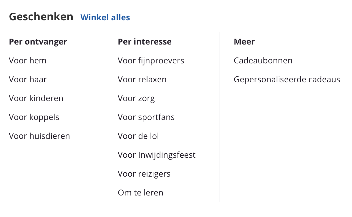 Consumenten geven tegenwoordig de voorkeur aan cadeaus die gebaseerd zijn op ervaringen boven traditionele fysieke cadeaus1. Aangezien Groupon de marktplaats is voor unieke ervaringen en lokale diensten, is het geen verrassing dat ons platform het drukst is wanneer klanten op zoek zijn naar cadeaus voor hun dierbaren. Daarom hebben we een aantal functies gelanceerd die het geven van cadeaus via Groupon makkelijker maken, zodat onze ondernemers meer omzet kunnen genereren!
